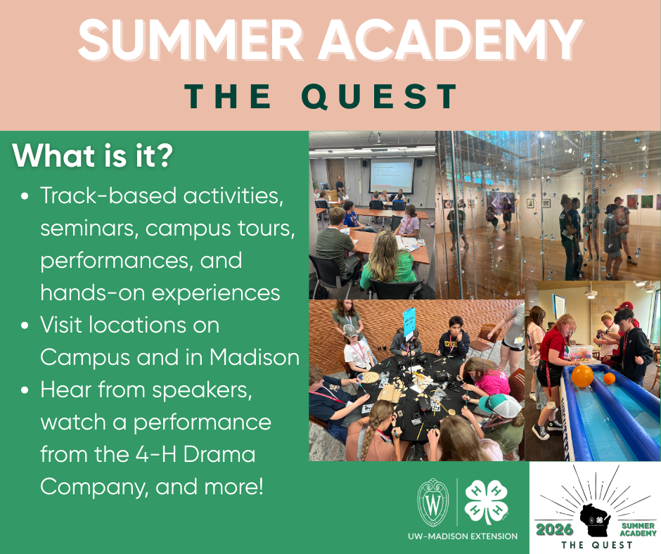 For more information, please visit go.wisc.edu/4HSummerAcademy … We can’t wait to see you in Madison!