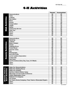 4-H Record Books encourage members to set goals, pursue strategies to meet those goals, and to shift gears in the face of challenges and obstacles. Completion of the Personal Development Report awards 4-H members for participation in 4-H activities, which provides an incentive for participation, learning, and achievement.